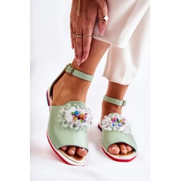Přidání recenze k Dámské kožené sandály s zdobením zelená Nevassa