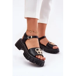 Přidání recenze k Dámské kožené sandály se zlatým detailem model 21695066 Černé - VINCEZA