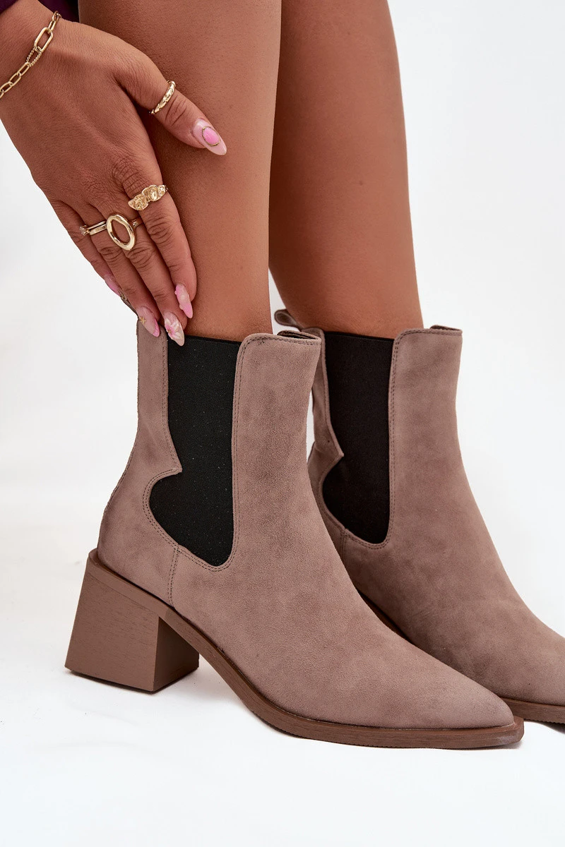Boty mají středně vysoký podpatek typu blok, který zajišťuje stabilitu a pohodlí, zároveň jemně prodlužuje siluetu nohy.