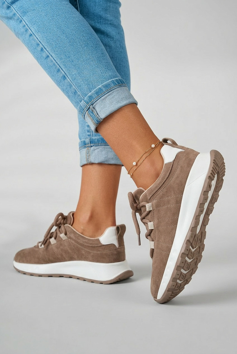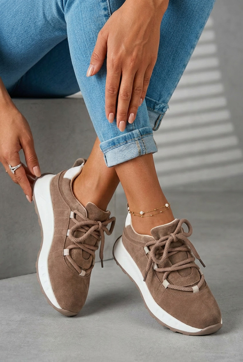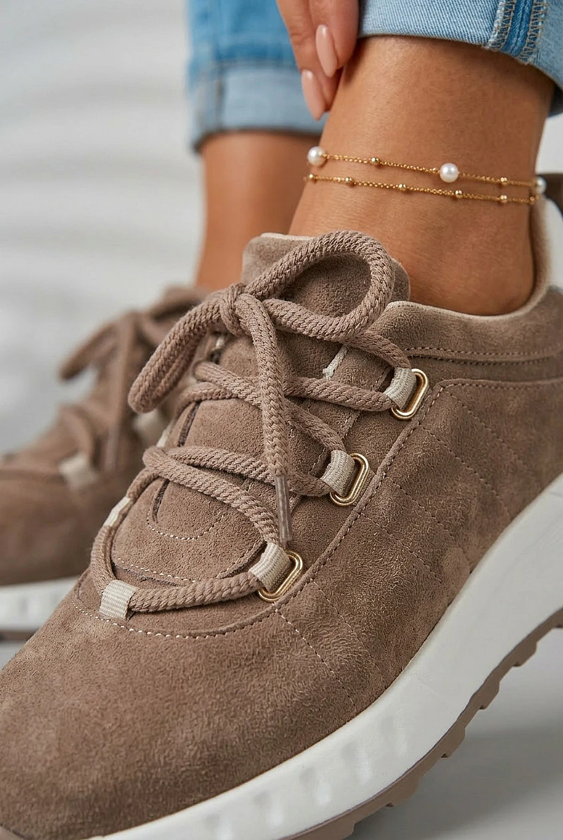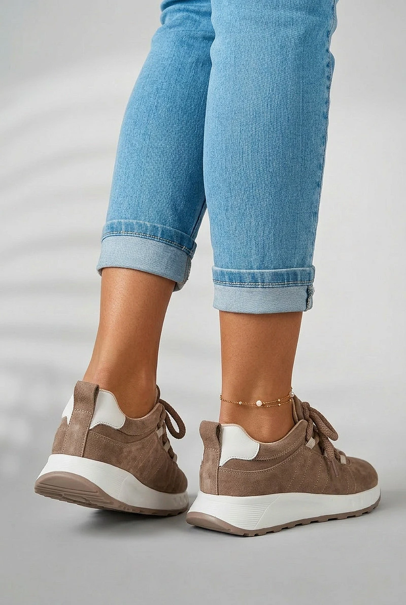 Dámské tenisky vyrobené z přírodního semiše jsou stylovou a pohodlnou volbou pro každodenní outfity. Měkký semiš dodává elegantní vzhled a zároveň zajišťuje komfort při nošení. Model je postaven na platformě, která jemně zvyšuje siluetu a zvyšuje pohodlí při chůzi. Tenisky se vyznačují silnými šňůrkami, které tvoří zajímavý dekorativní prvek a zdůrazňují moderní styl obuvi. Boty mají koženou vložku Comfort Shoes, která poskytuje vhodný komfort a dobře se přizpůsobí noze. Díky lehké konstrukci je model skvělý pro každodenní nošení a hodí se k mnoha stylům – jak s džíny, tak s kalhotami z textilu nebo sportovními soupravami. Při výběru velikosti se řiďte tabulkou velikostí.