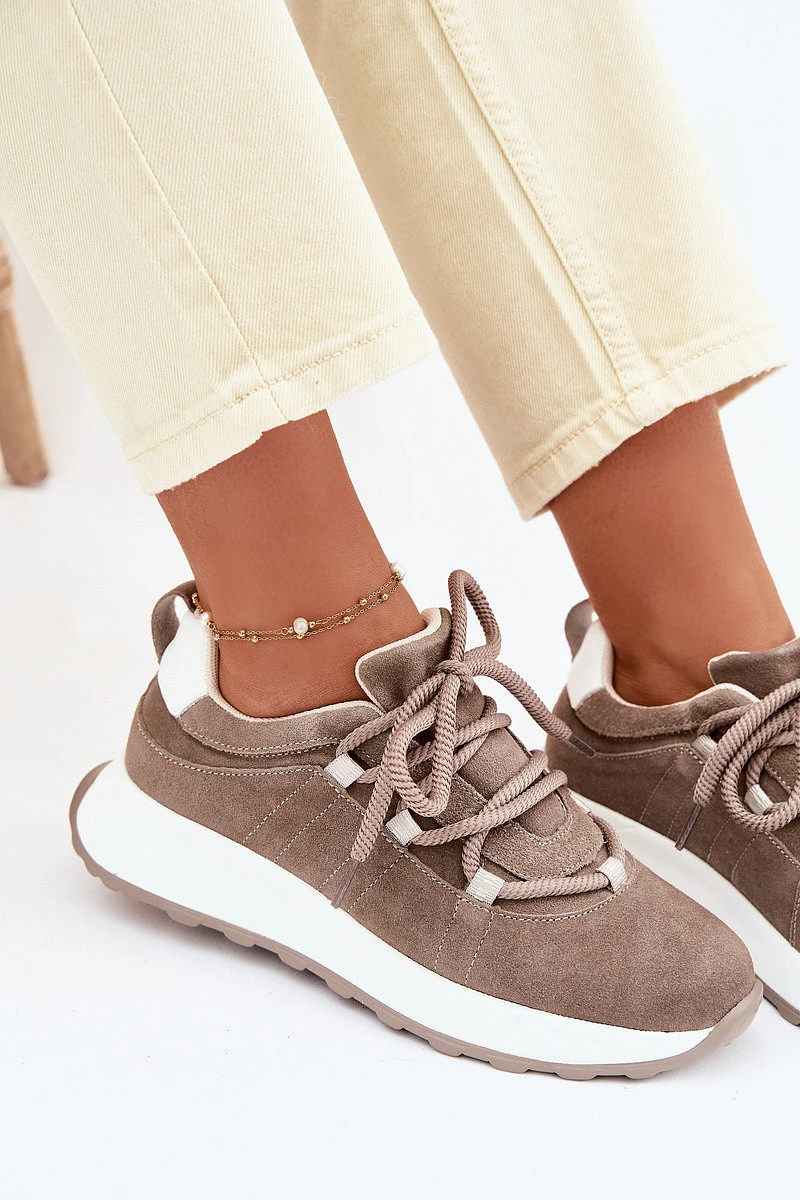 Dámské kožené semišové tenisky Hnědé model 22069525 - EVENTO