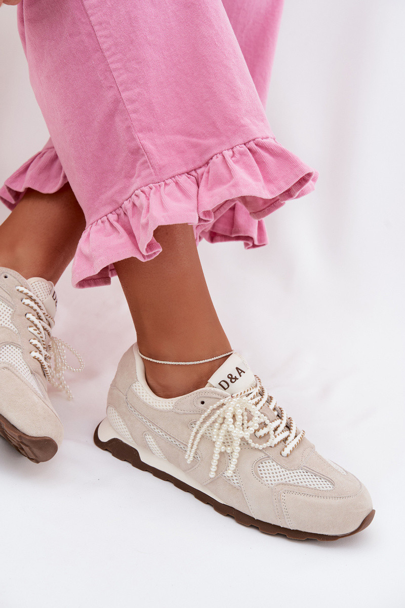 Dámské tenisky vyrobené z přírodního semiše a síťoviny jsou pohodlnou volbou pro každodenní stylizace. Kombinace materiálů zajišťuje komfort při nošení, díky čemuž se model skvěle hodí na celý den. Boty jsou lehké a příjemné na nošení a klasické šněrování umožňuje přizpůsobení tvaru nohy. Originálním detailem je odnímatelná ozdoba ve tvaru korálků, která umožňuje dodat osobitý charakter nebo vytvořit minimalistický vzhled. Jedná se o stylovou a praktickou obuv, která skvěle doplní každodenní městské outfity. Při výběru velikosti se řiďte tabulkou velikostí.