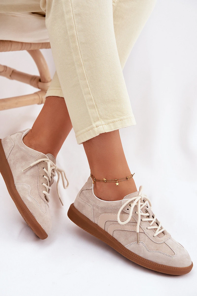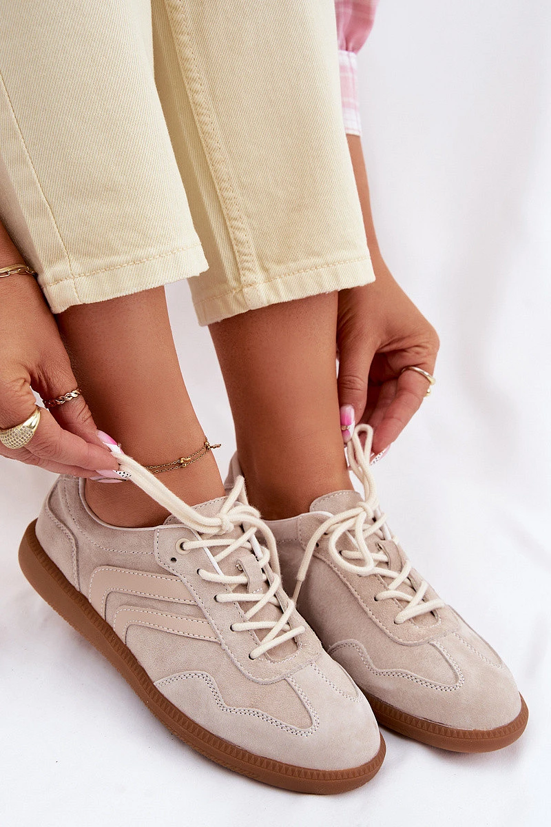 Dámské kožené semišové tenisky nízké béžové model 22100202 - Boto