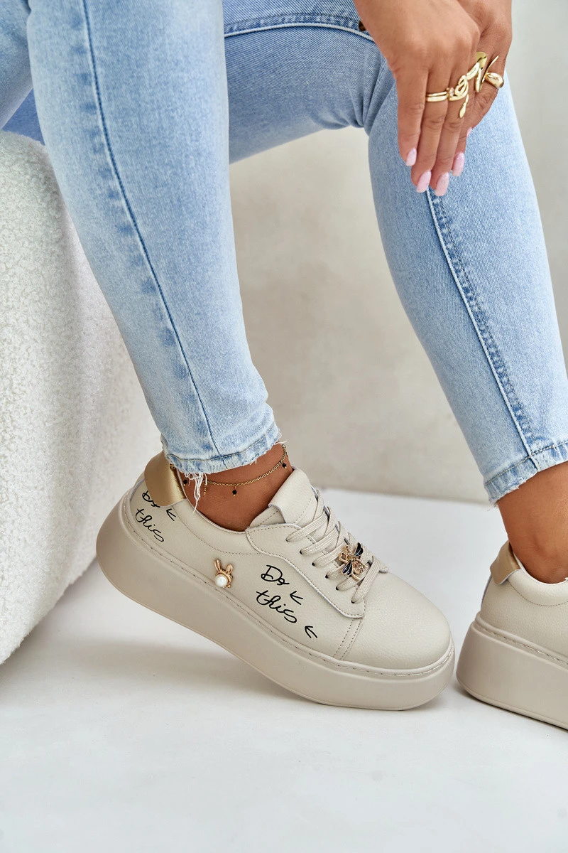 Přidání recenze k Dámské Kožené Sneakersy Na Platformě S Přišitými A Nápisem Vinceza 89102 Béžové