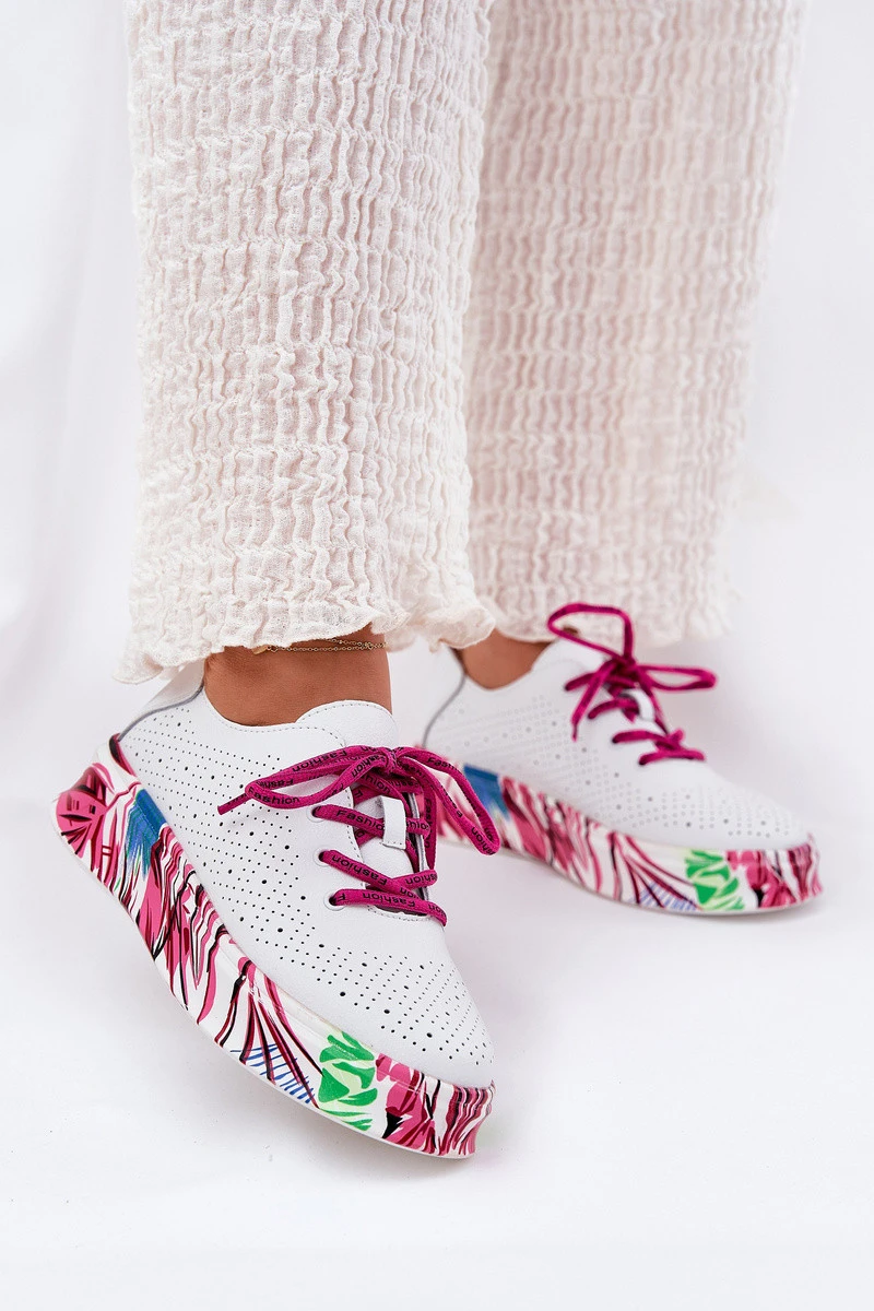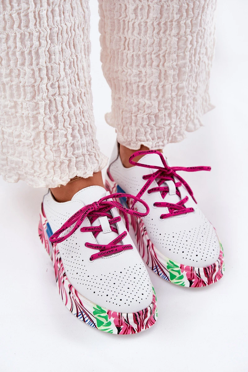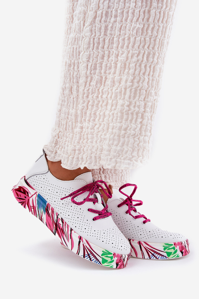 Dámské Kožené Sneakersy Na Vzorované Platformě model 21691905 Bílé - VINCEZA