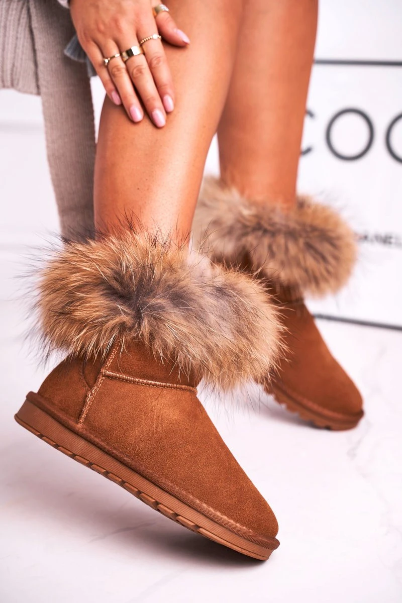 Dámské Kožené Sněhule S Kožešinou Camel Alexa