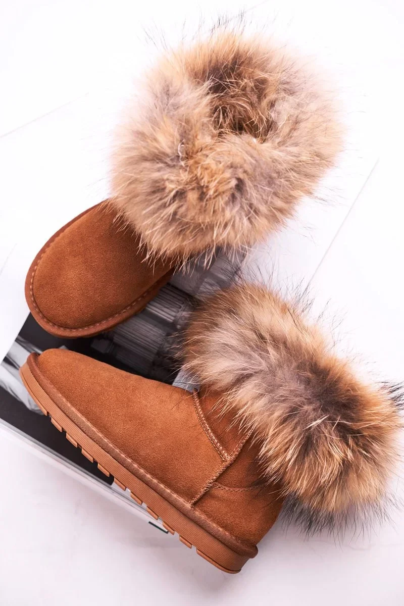 Dámské Kožené Sněhule S Kožešinou Camel Alexa