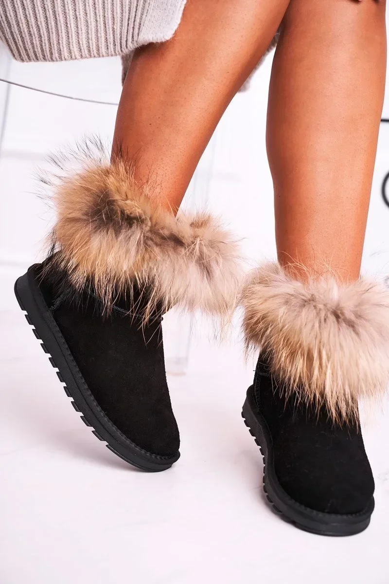 Dámské Kožené Sněhule S Kožešinou černé model 19945647 - Kesi
