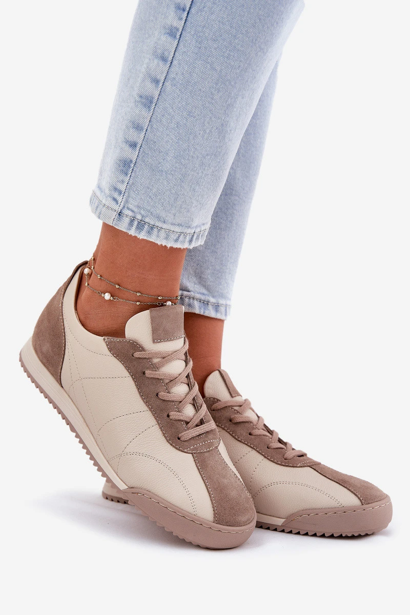Dámské Kožené Sportovní Boty Béžové model 21694836 - Laura Messi