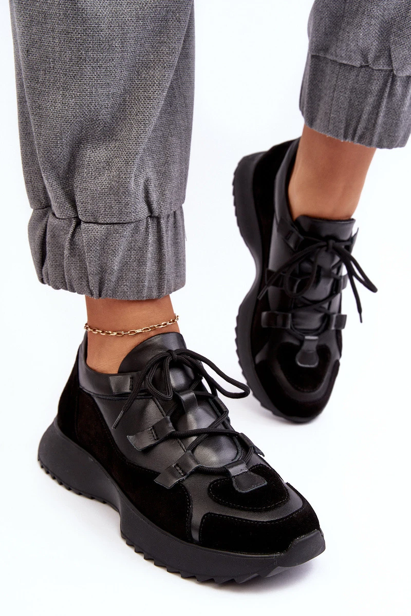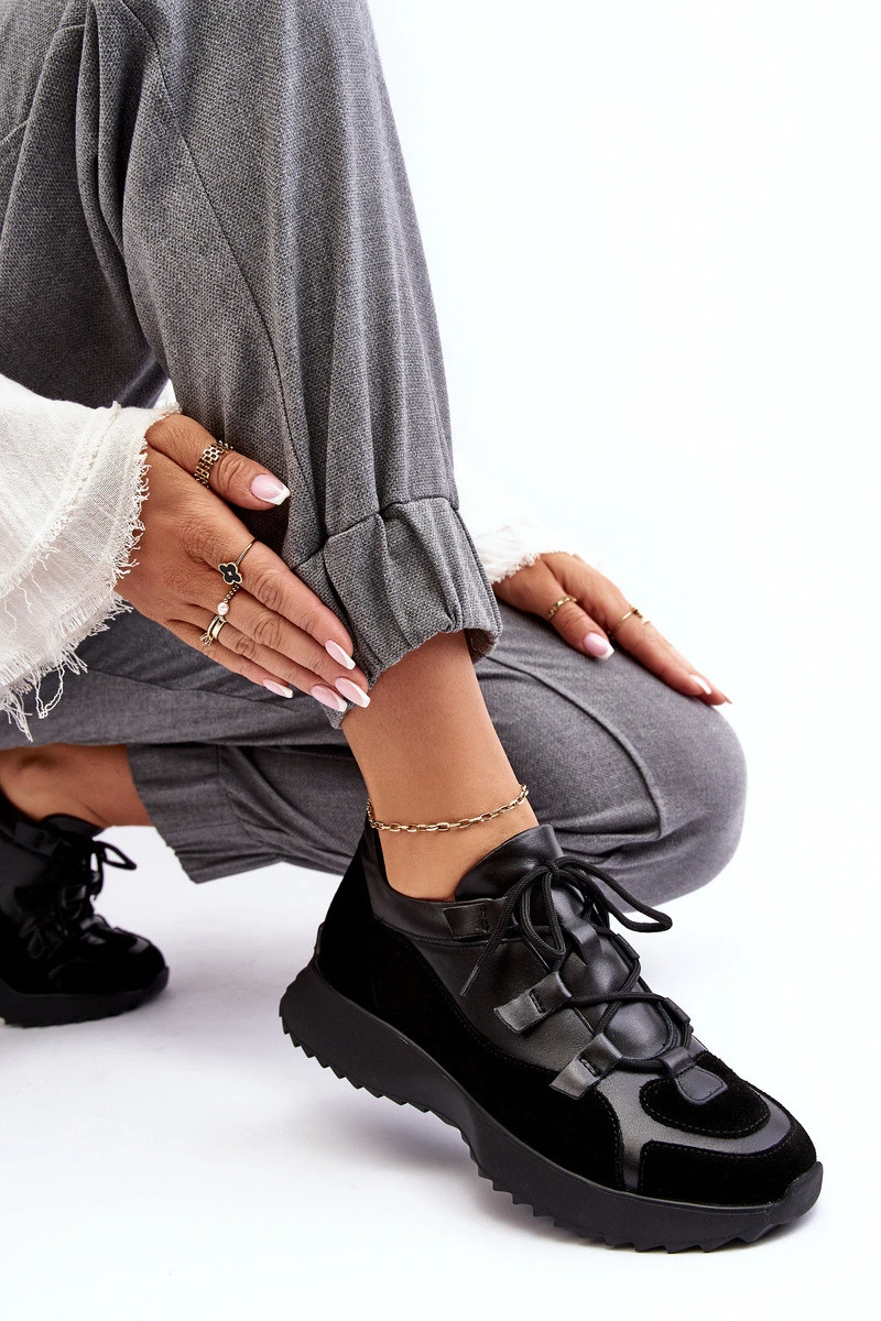Dámské kožené sportovní boty model 21638349 černé - Zazoo
