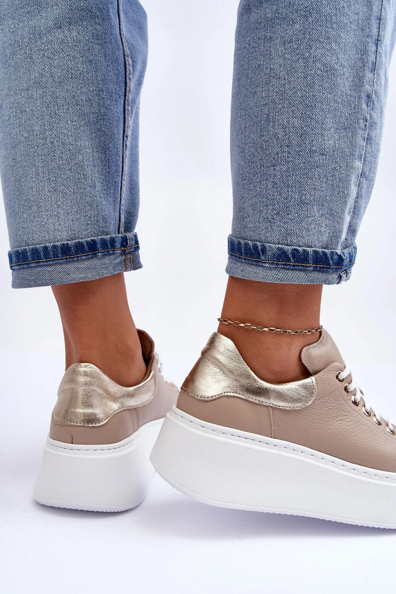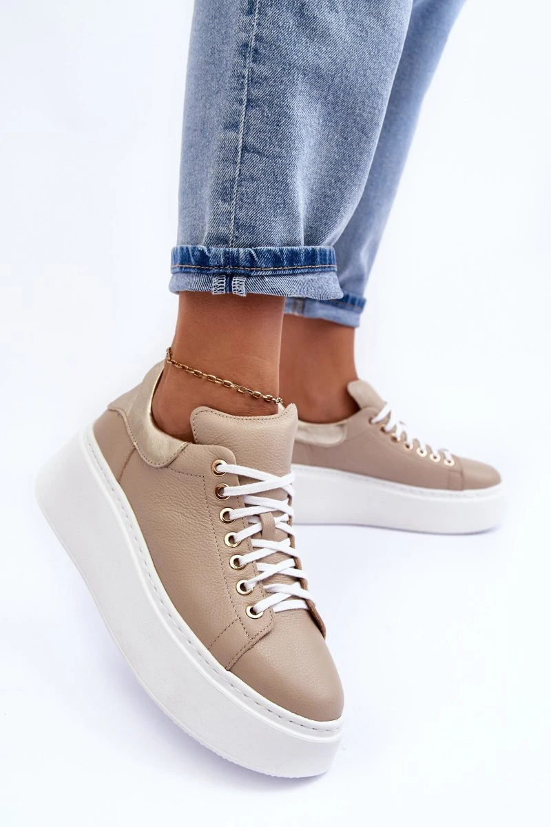 Dámské kožené sportovní boty na platformě Bežové Lemar 10150