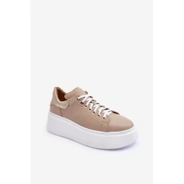 Dámské kožené sportovní boty na platformě Bežové Lemar model 21633508 - Boto