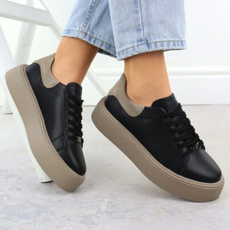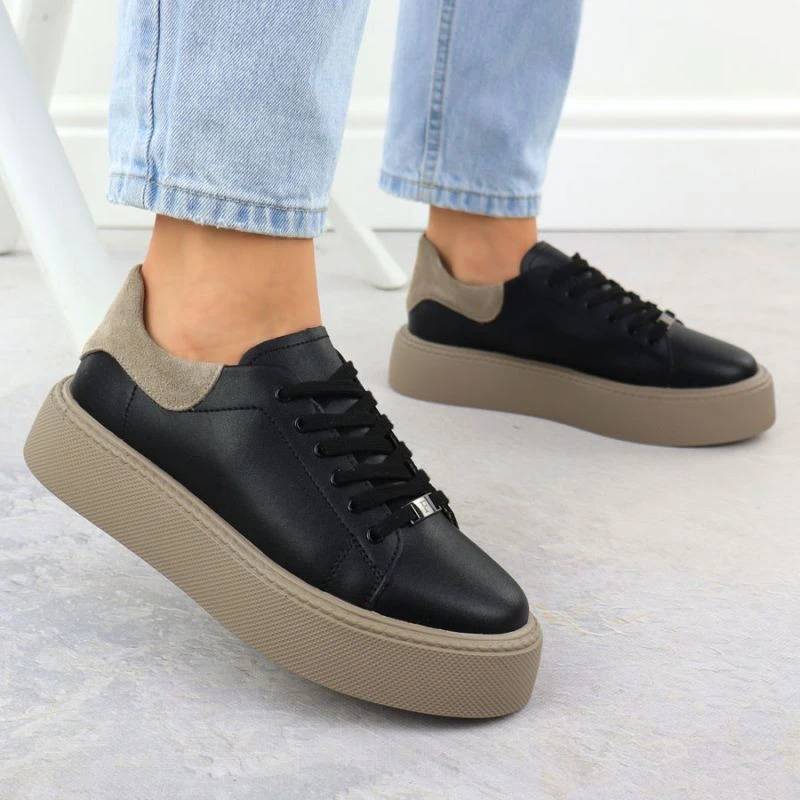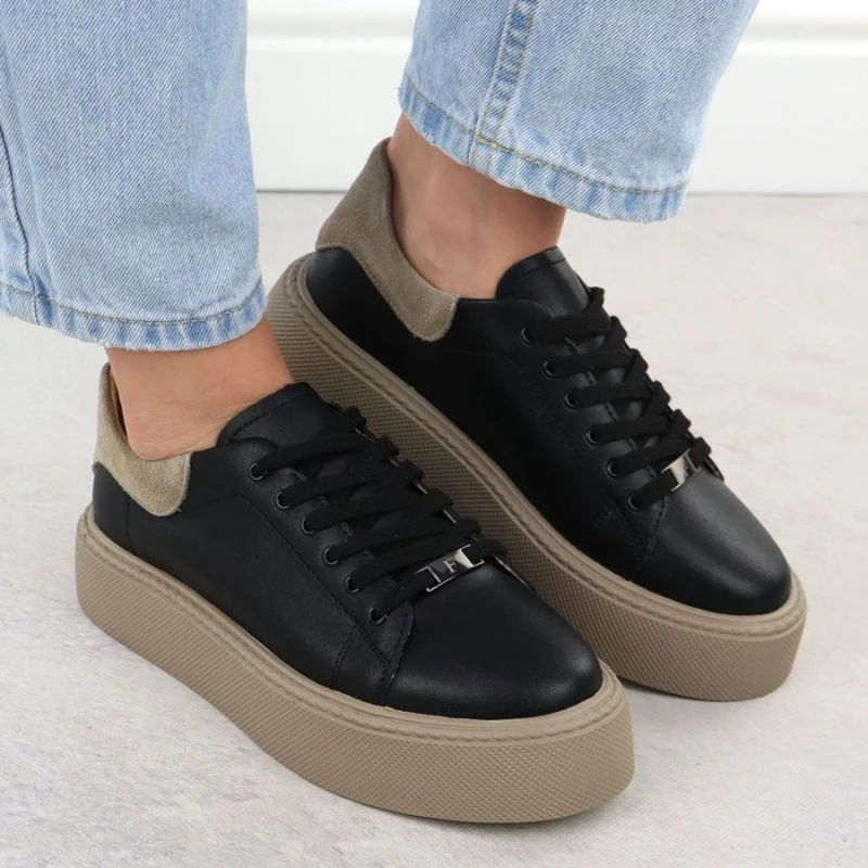 Dámské kožené sportovní polobotky na platformě černé Filippo DP6119
