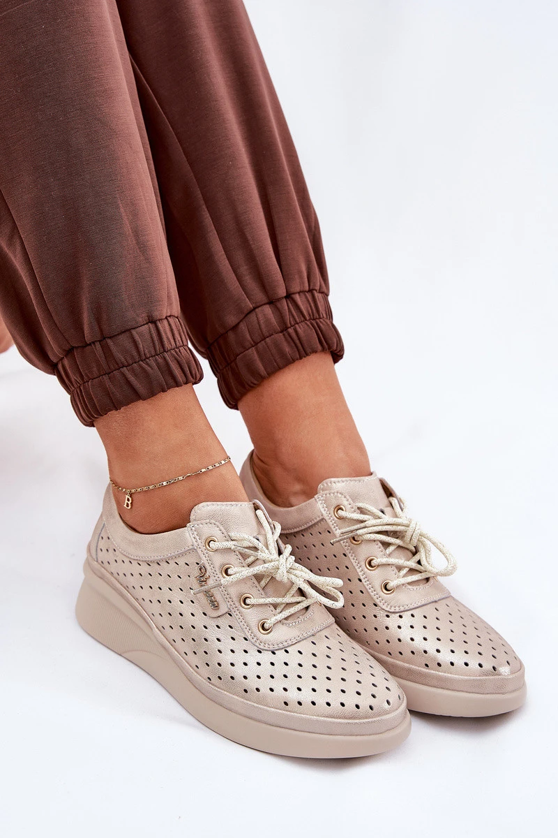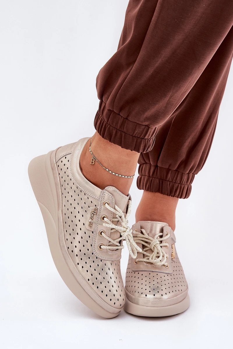 Dámské Kožené Sportovní Tenisky Zlaté model 21686723 - VINCEZA
