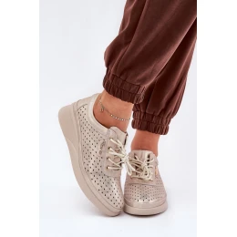 Krásné dámské tenisky jsou vyrobeny z přírodní kůže, která zaručuje vysokou kvalitu a odolnost. Jejich perforovaná struktura po stranách zajišťuje vhodný proud vzduchu, což je činí ideálními na teplé dny. Model je klasicky šněrován, což umožňuje ideální přizpůsobení k noze. Zaoblený špičatý konec přidává botám eleganci. Měkká kůží vyrobená vložka zajišťuje pohodlí během nošení. Tyto moderní tenisky jsou skvělou volbou pro každodenní styly! Při výběru velikosti se řiďte tabulkou velikostí.