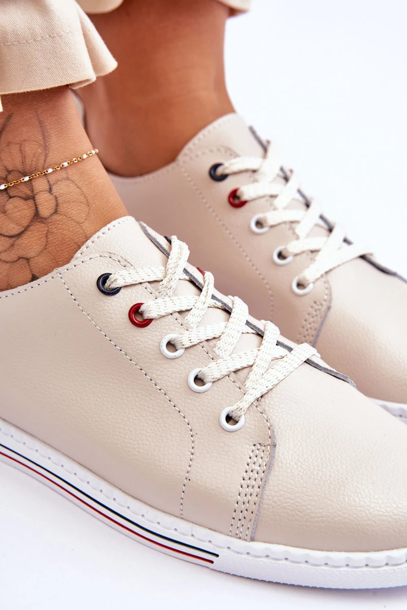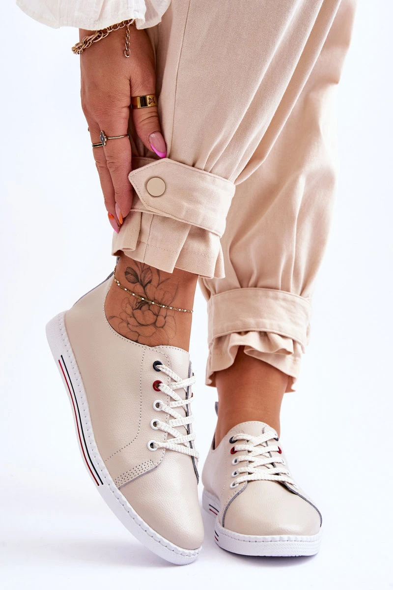 Dámské kožené tenisky béžové model 21615788 - S.Barski