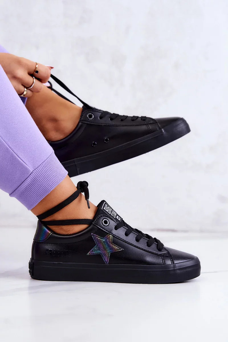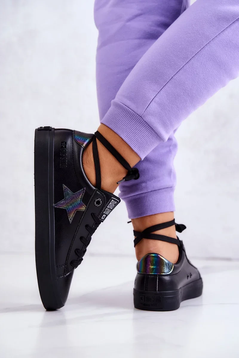 Tenisky Big Star vyrobené z odolné eko kůže. Na boku svršku všitá třpytivá hvězda. Podešev bot je vyrobena z kvalitního pryžového materiálu, který zajistí kvalitní používání. Vázání zabrání uklouznutí a umožní, aby správně přiléhalo k noze. Módní a pohodlné. Tento model se bude hodit na každodenní nákupy nebo procházky. Boty mají stélku z odolného a oděruvzdorného materiálu. Při výběru velikosti použijte tabulku velikostí.