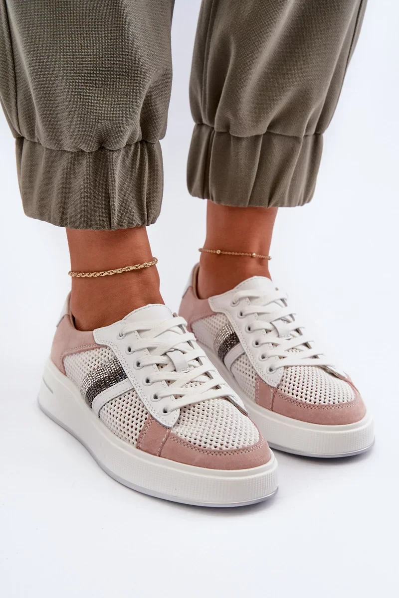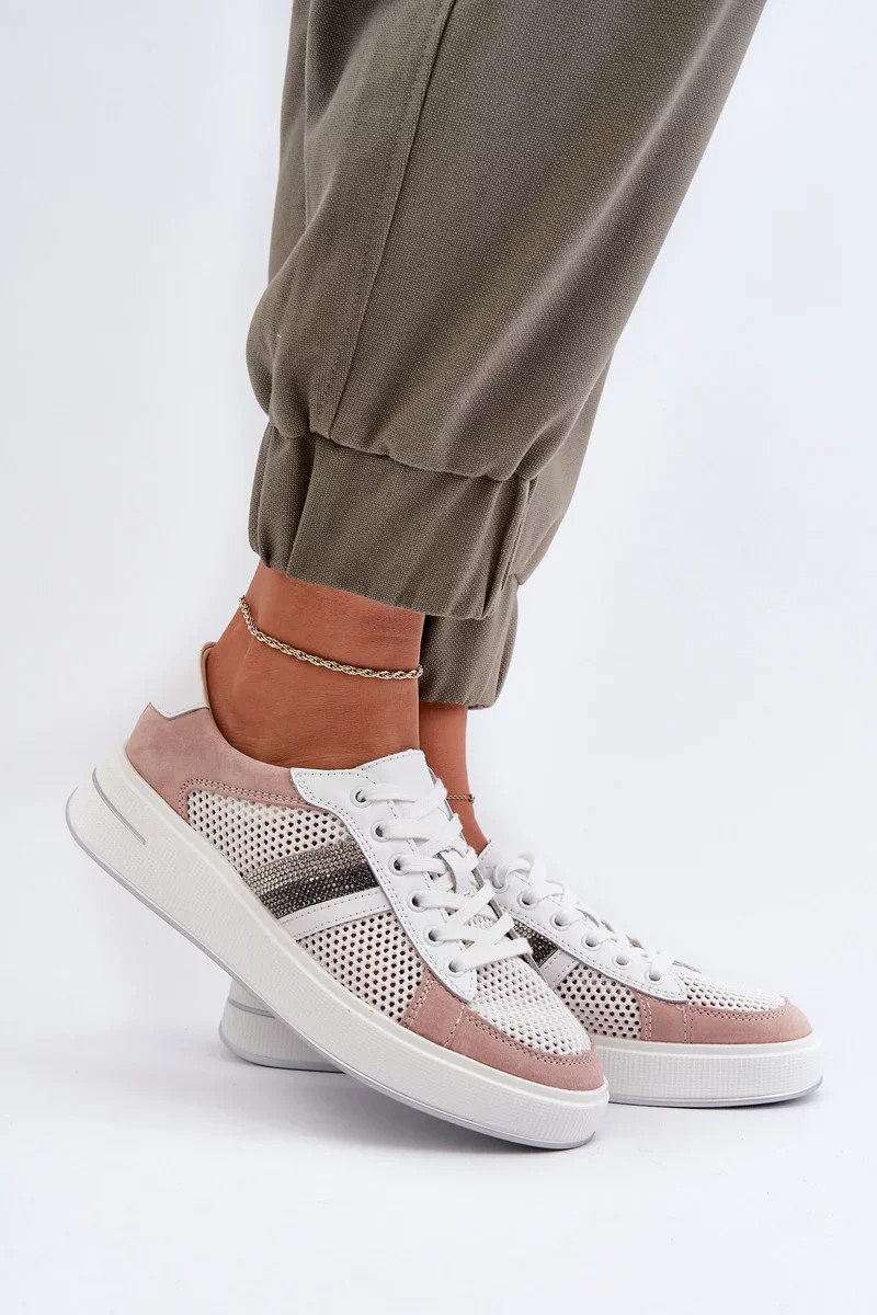Přidání recenze k Dámské kožené tenisky bílé a růžové D&A
