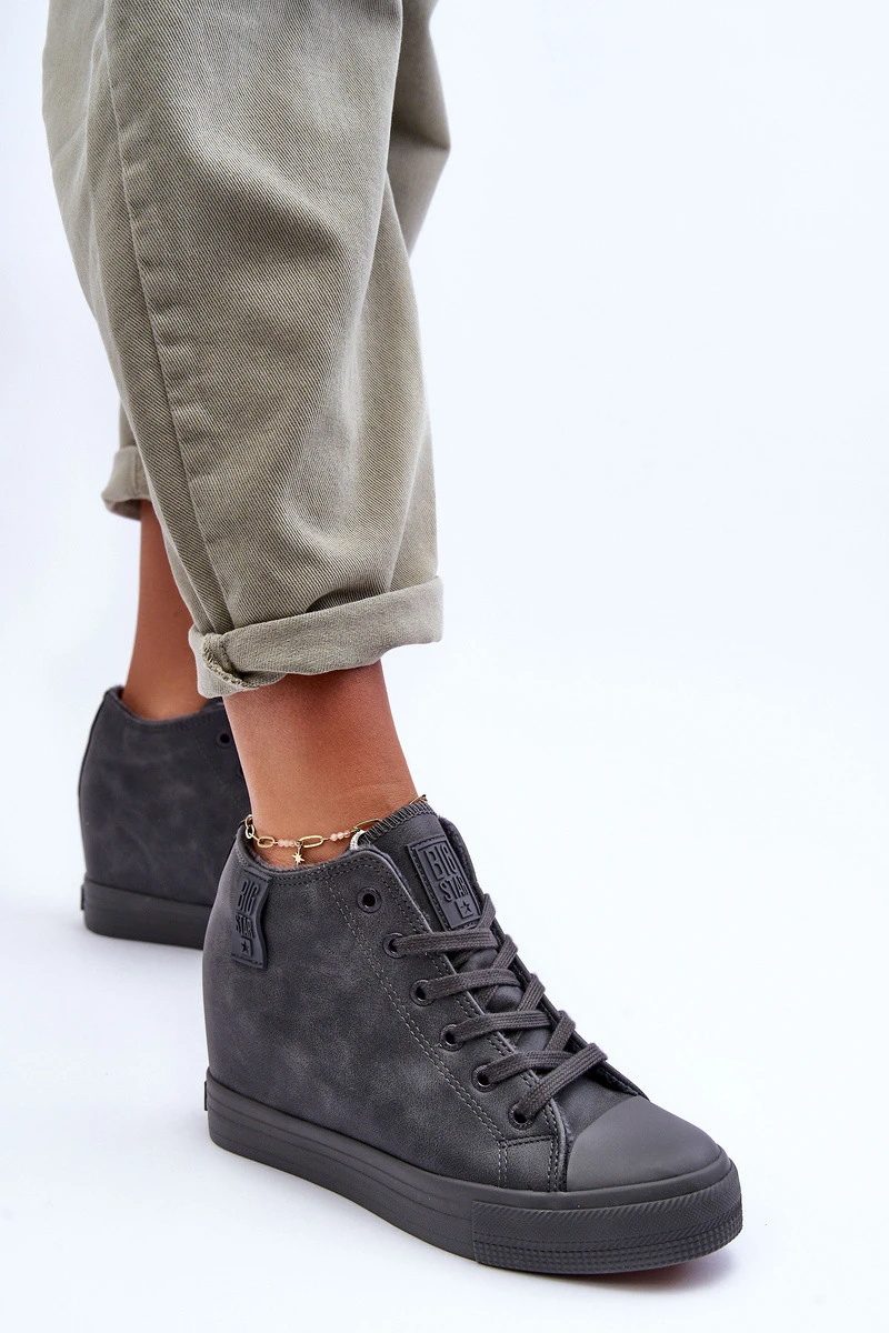Dámské Kožené Tenisky Na Koturnu Big Star MM274005 Šedé