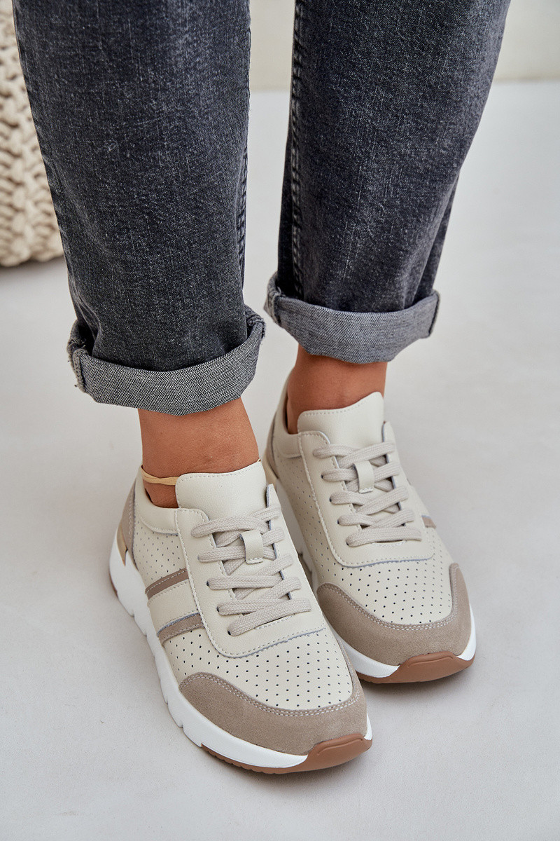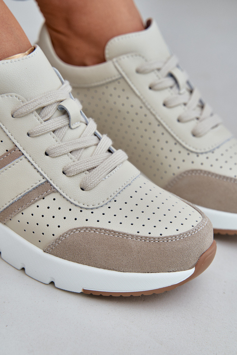 Dámské kožené tenisky na platformě béžové model 21685462 - EVENTO