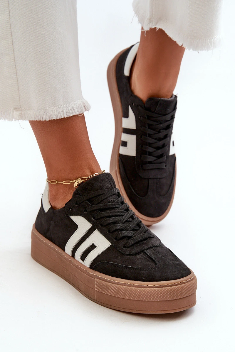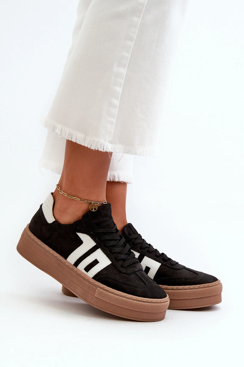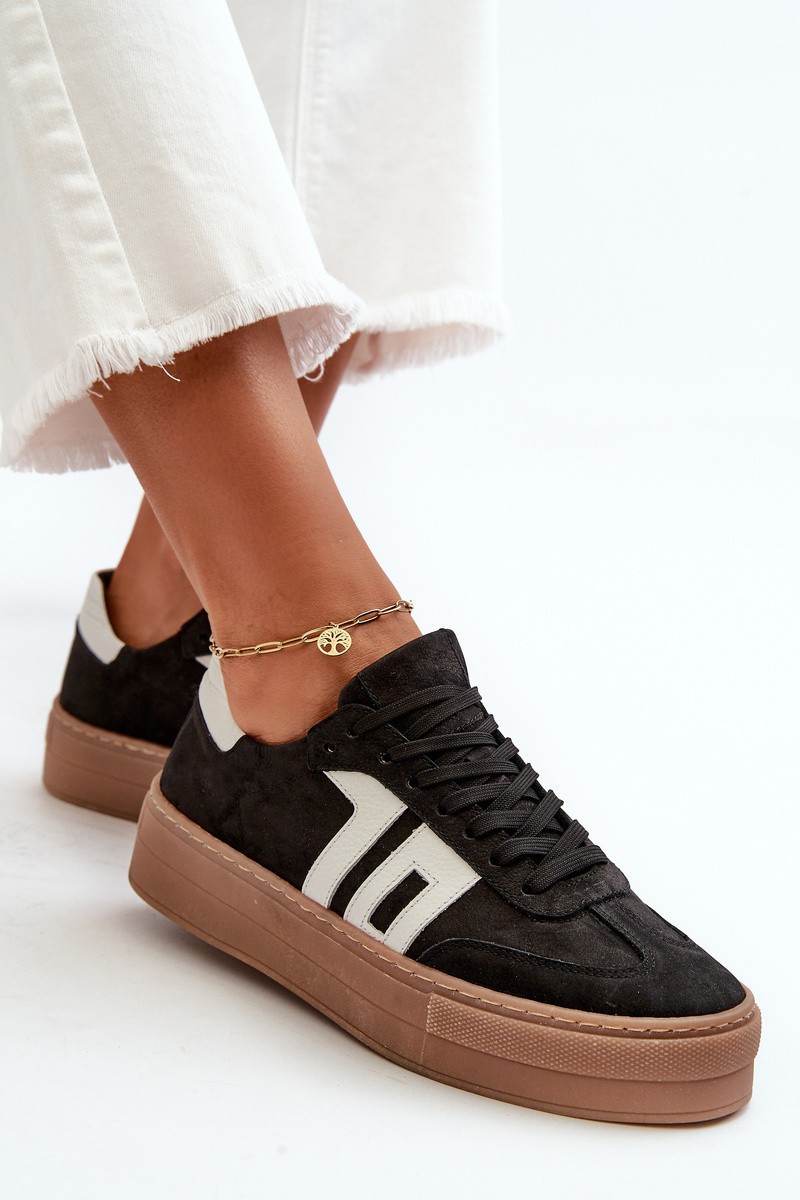 Dámské kožené tenisky na platformě černé model 21665868 - Zazoo