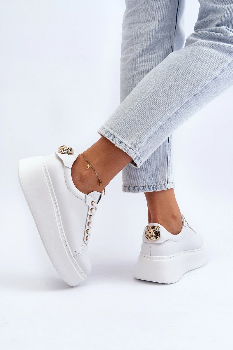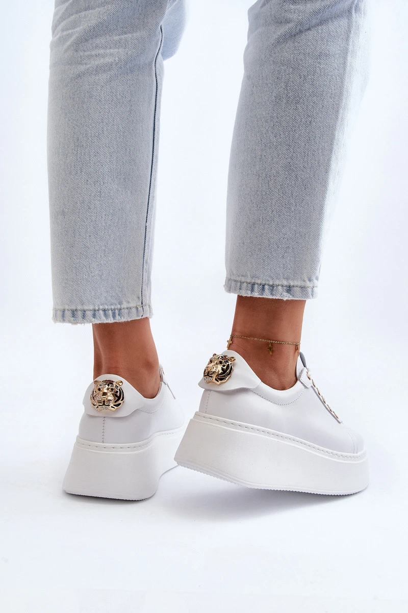 Dámské tenisky od značky CheBello. Vyrobené z vysoce kvalitní přírodní kůže. Vsazeny na masivní platformě. Vzadu brož v podobě tygra. Tento model je skvělým návrhem pro lidi, kteří chtějí spojit pohodlí s elegancí ve svém každodenním stylu! Ideální k džínům, širokým kalhotám a hladkým šatům. Určitě byste je měla mít ve svém šatníku! Při výběru velikosti se řiďte tabulkou velikostí.