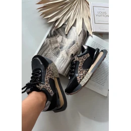 Dámské kožené tenisky na platformě s leopardím vzorem Artiker – černé