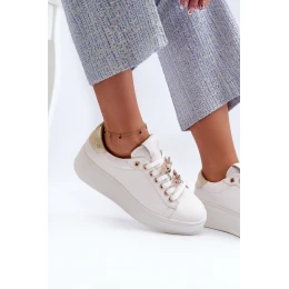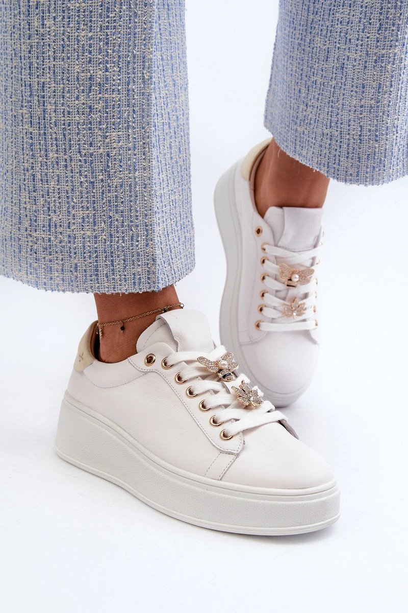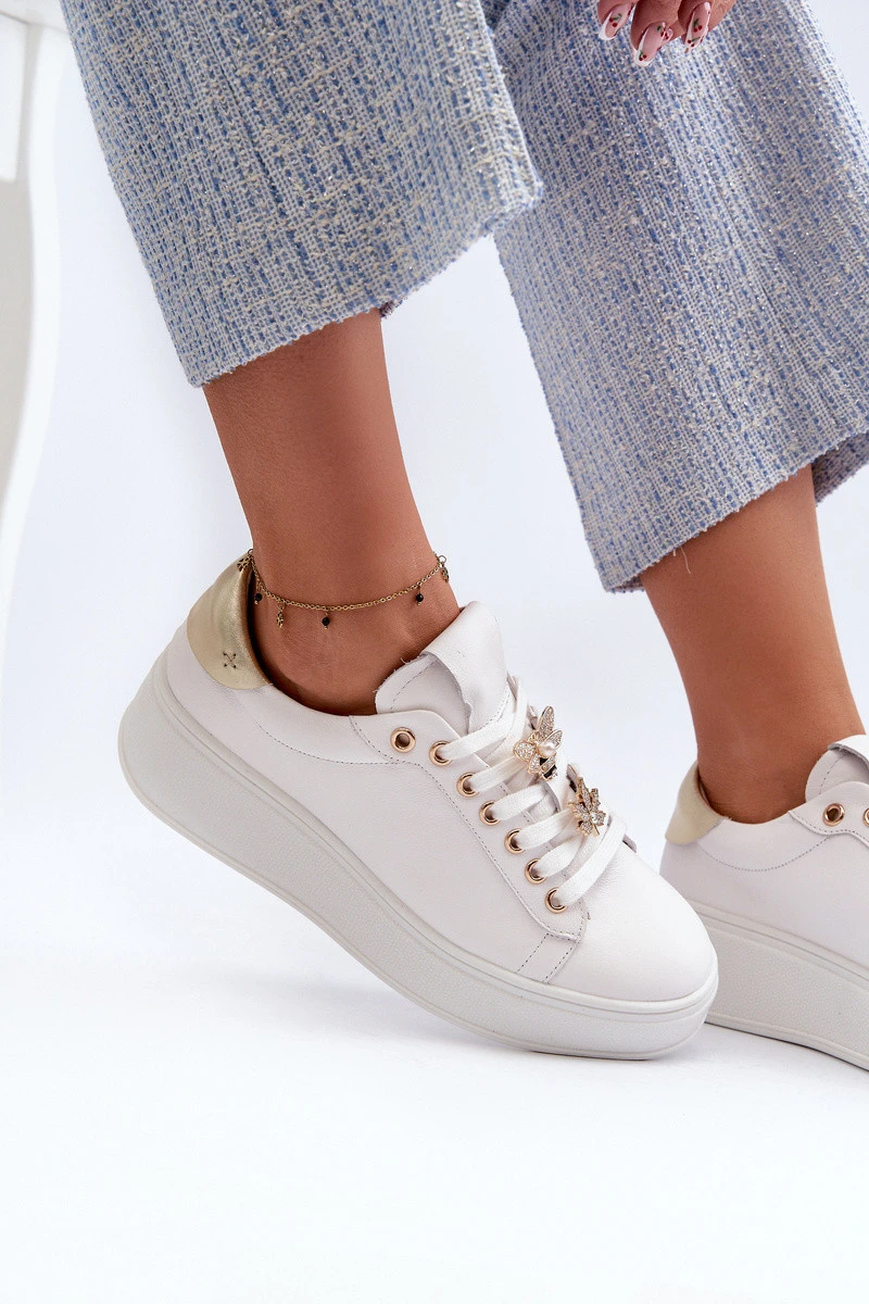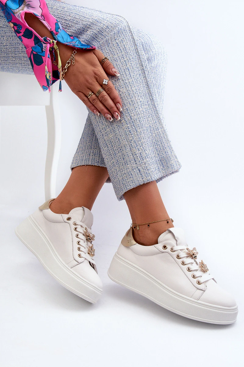 Dámské kožené tenisky na platformě s ozdobnými knoflíčky D&A SN67 Bílé