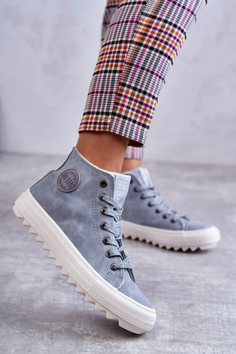 Dámské Kožené Teplé Tenisky Big Star EE274115 Světle Modré