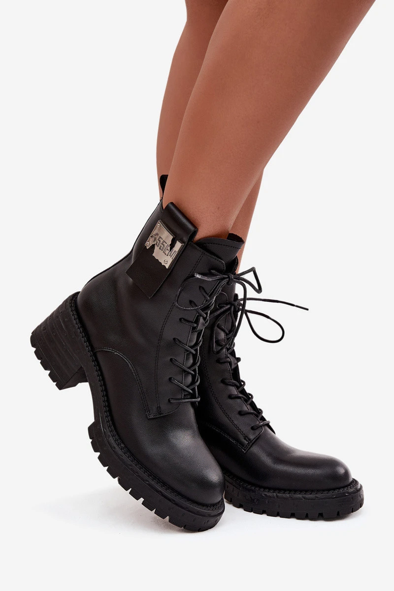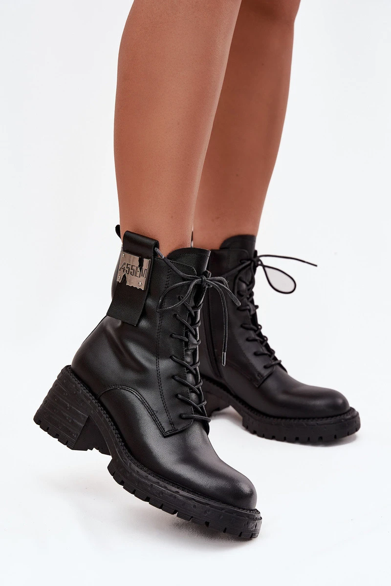 Podpatek typu blok dodává postavě lehkost a zároveň poskytuje pohodlí při každodenním nošení. Boty mají praktické šněrování a boční zip, což usnadňuje obouvání a perfektně přizpůsobuje botu noze.