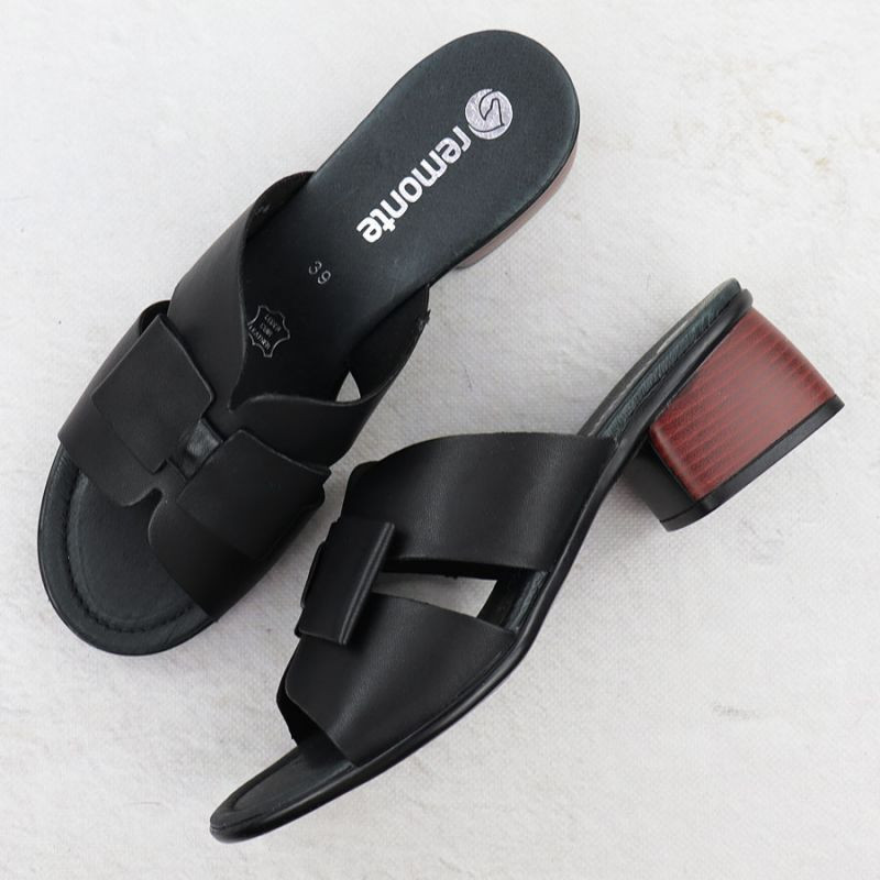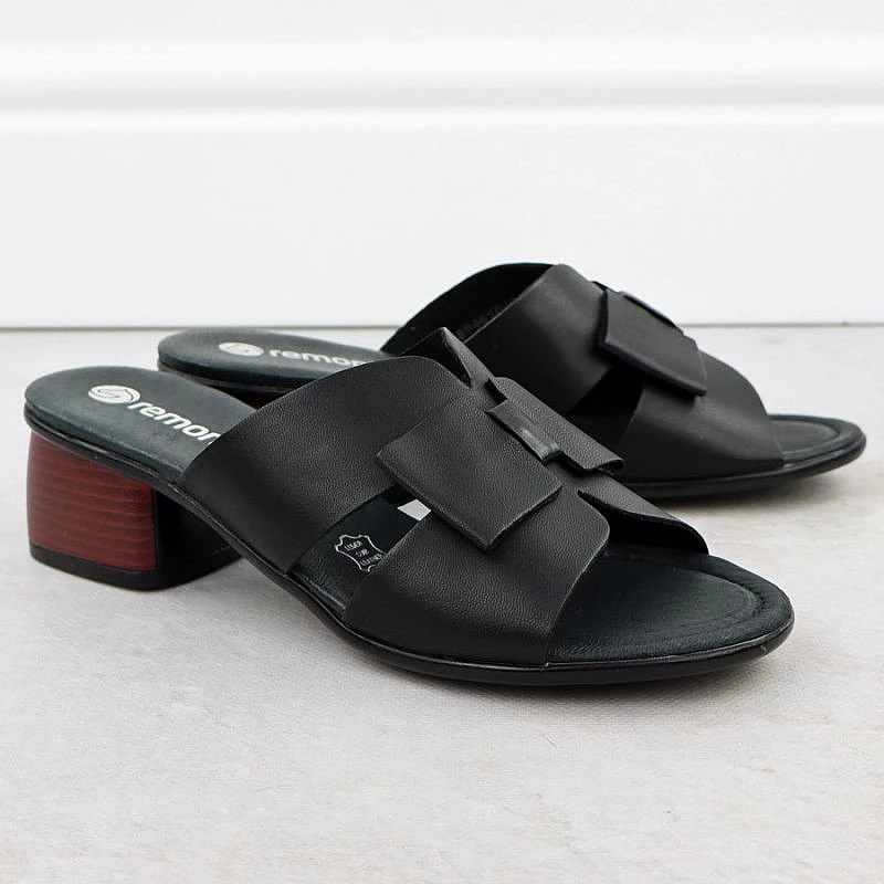 Dámské kožené žabky na klínku černé Remonte R8759-01