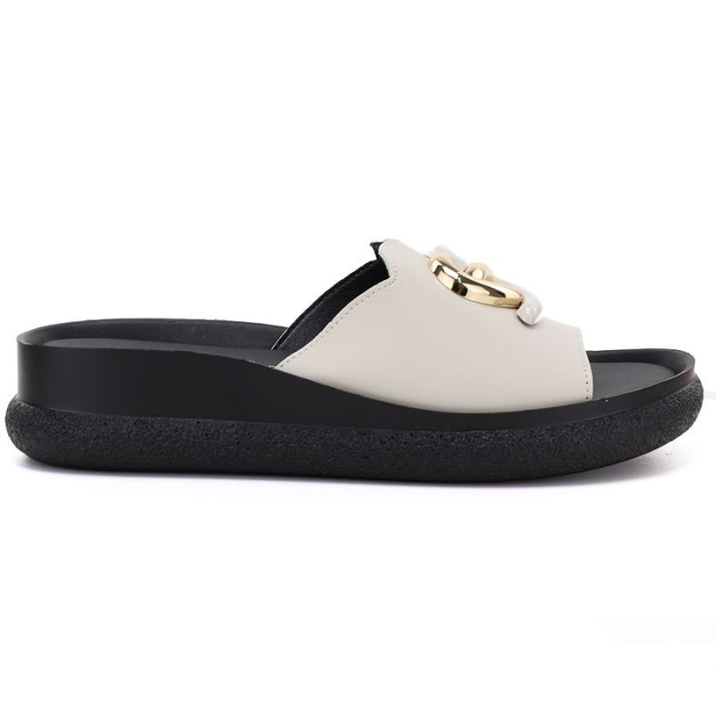 Dámské kožené žabky na platformě béžové S.Barski KV61-6046