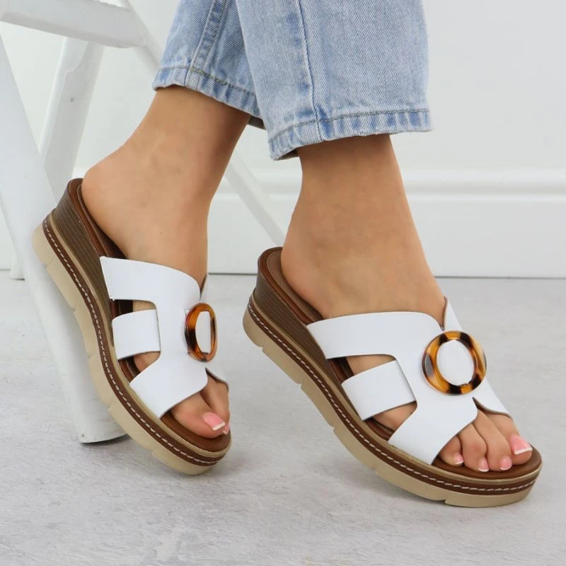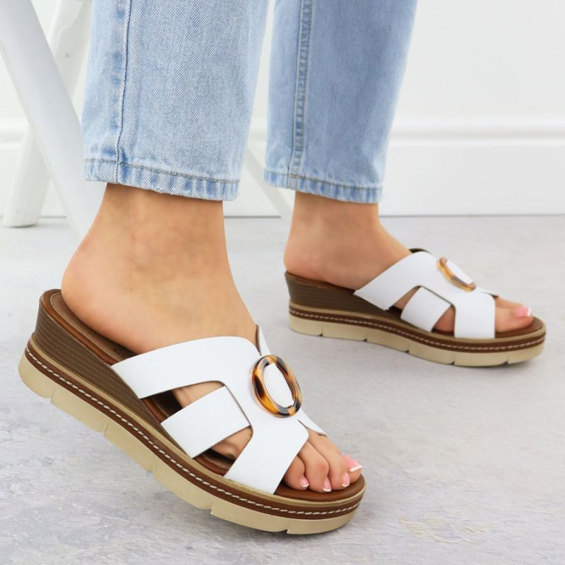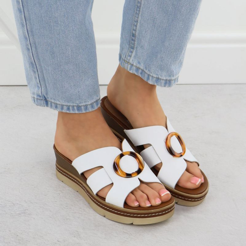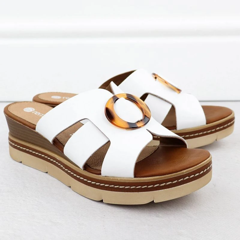 Dámské kožené žabky na platformě bílé model 21904783 - Remonte