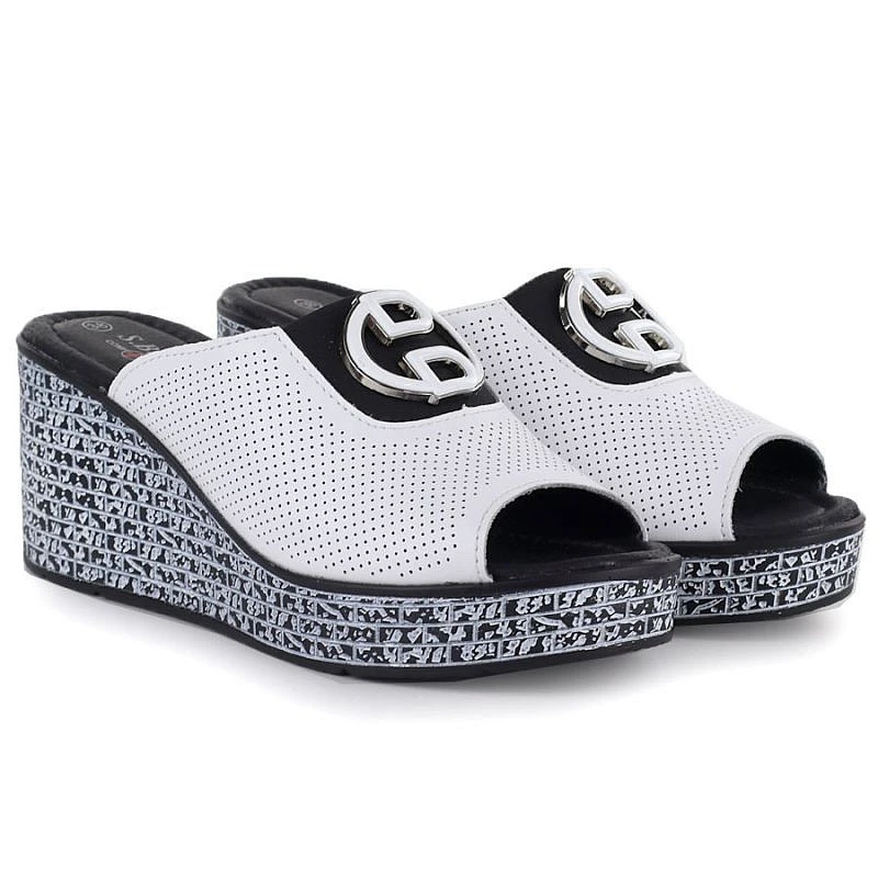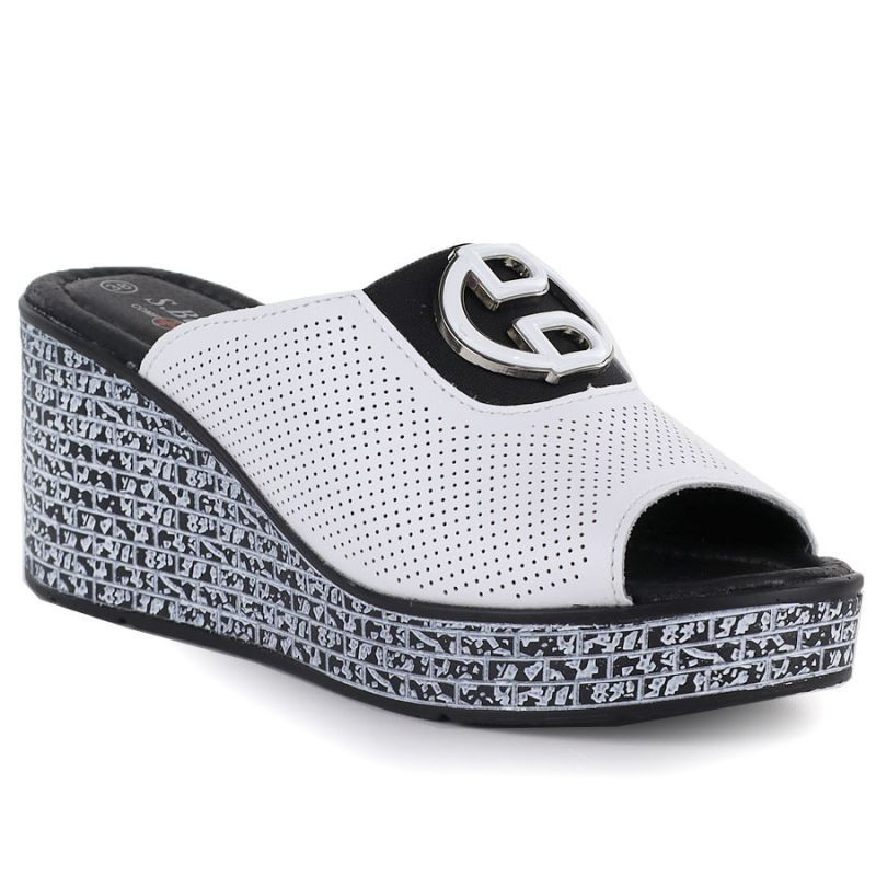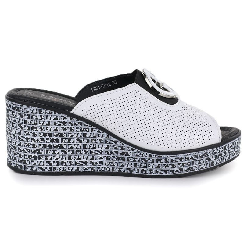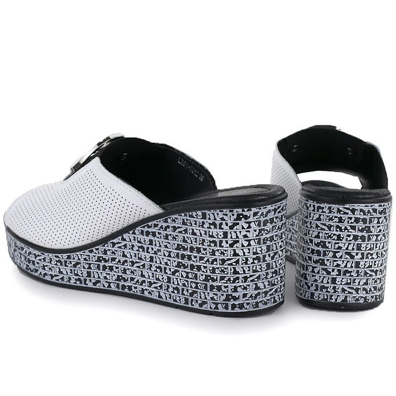 Dámské kožené žabky na platformě bílé S.Barski 7012