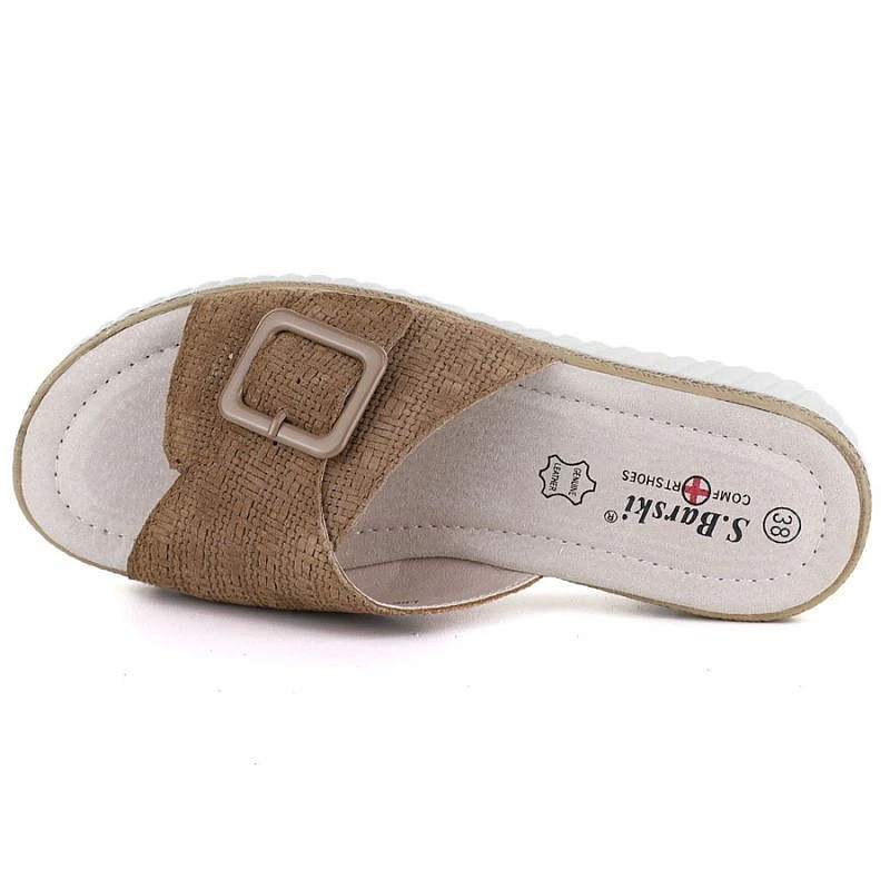Dámské kožené žabky na platformě hnědé model 22097148 - S.Barski