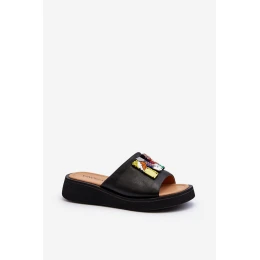 Dámské kožené žabky s ozdobou černé model 21649474 - VINCEZA