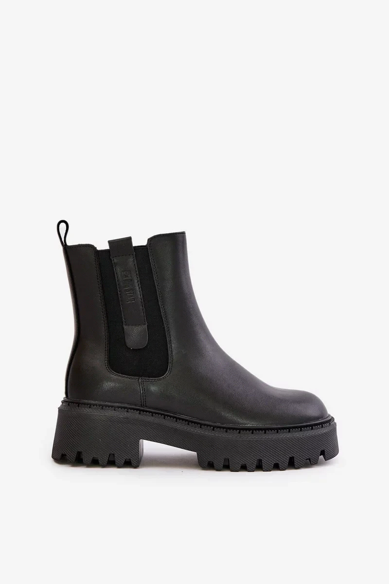 Dámské kožené zateplené kotníkové boty Big Star Chelsea - černé
