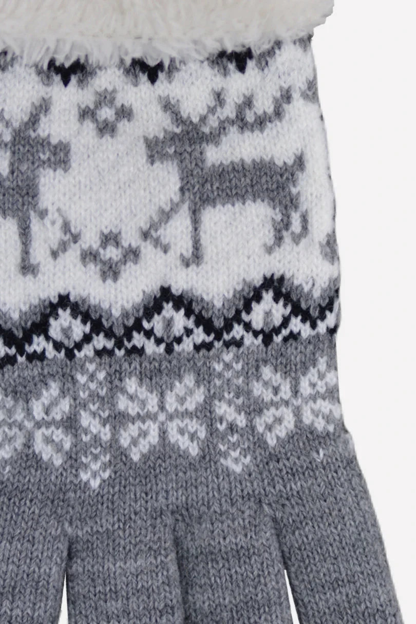 Dámské rukavice se zimním vzorem a zateplenou manžetou. Příjemné na dotek, hřejivé a funkční, se speciální vložkou na prstech pro ovládání dotykových displejů
