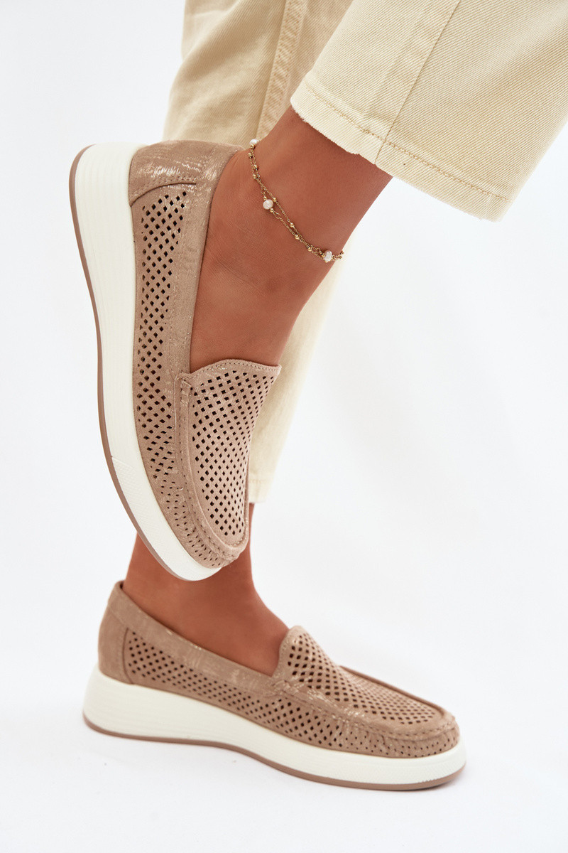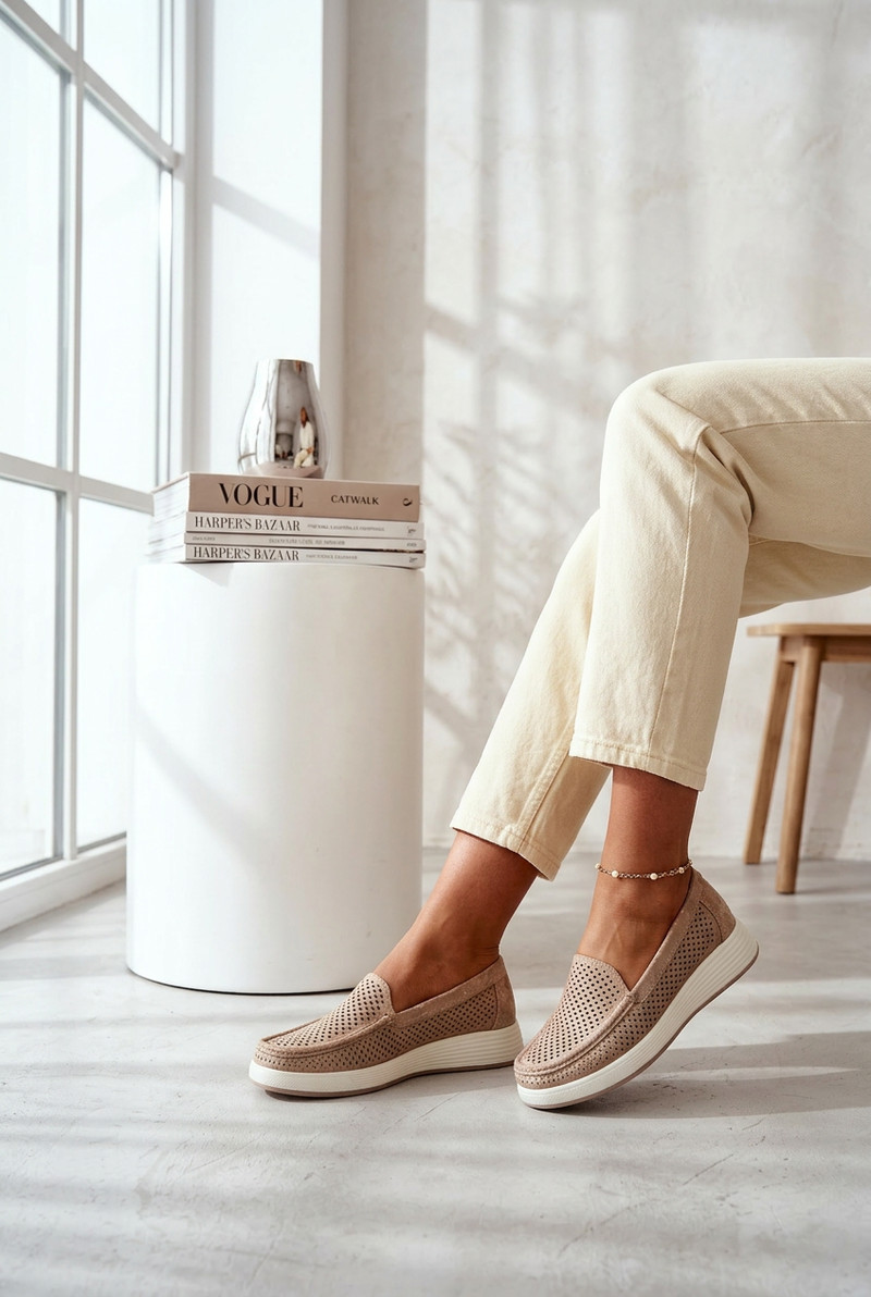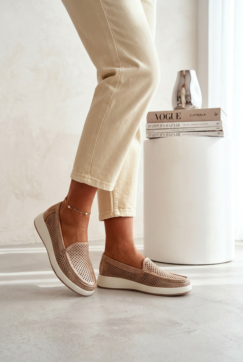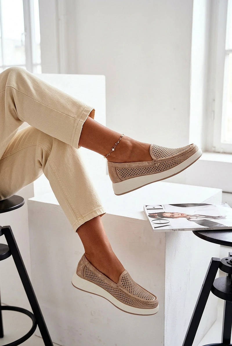 Dámské mokasíny značky Sergio Leone jsou lehký a pohodlný model ideální na teplejší dny. Vrchní část je ozdobena otevřenými výřezy, které dodávají stylový vzhled a zajišťují lepší prodyšnost. Model se vyznačuje velmi lehkou konstrukcí, díky čemuž jsou mokasíny pohodlné na nošení po celý den. Obuv má koženou vložku, která zvyšuje komfort nošení a dobře se přizpůsobuje noze. Jedná se o praktický a univerzální střih, který se skvěle hodí do každodenních stylizací – výborně ladí jak s kalhotami, tak s šaty nebo sukněmi. Při výběru velikosti se řiďte tabulkou velikostí.