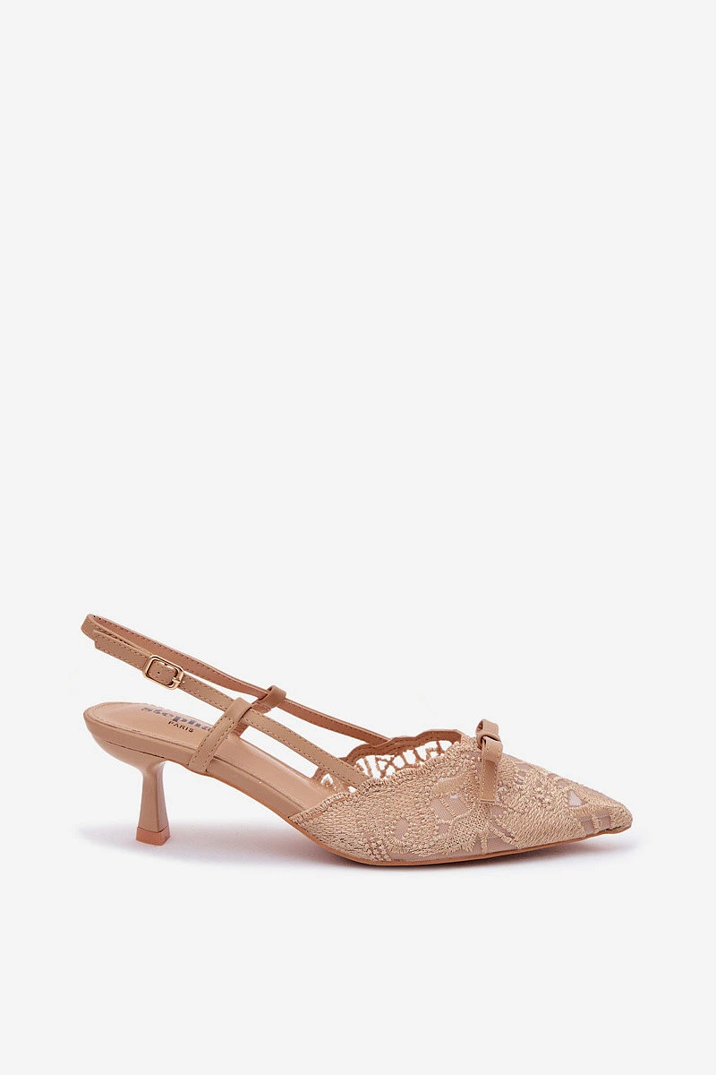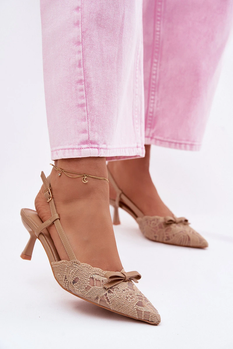 Dámské krajkové sandály na podpatku s mašlí Béžové model 22107303 - Boto