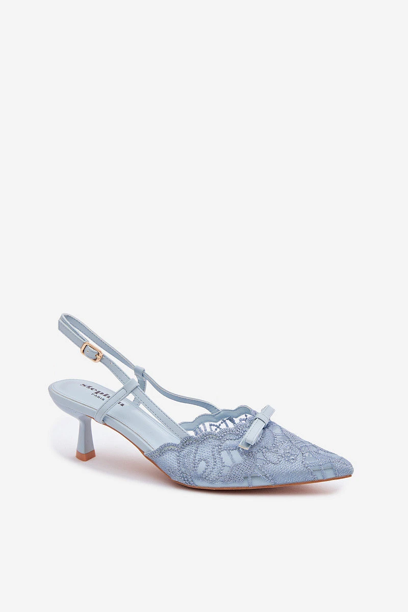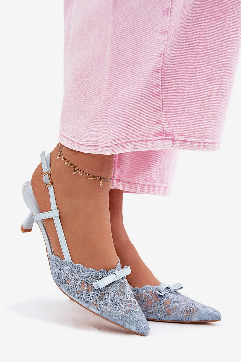 Dámské krajkové sandály na podpatku s mašlí Modré model 22107296 - Boto