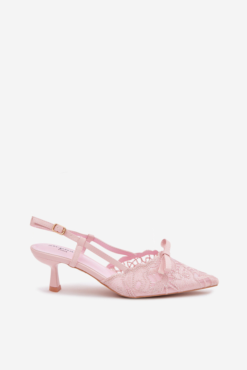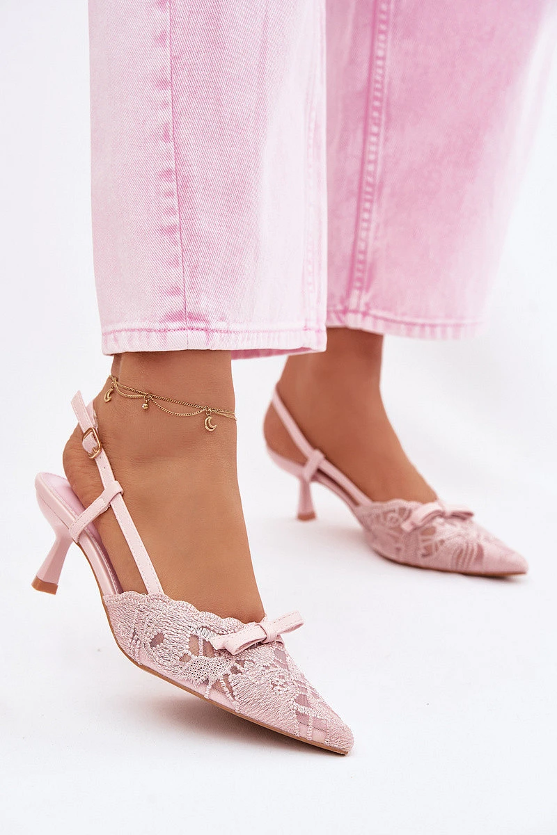 Dámské krajkové sandály na podpatku s mašlí Růžové Maribelle