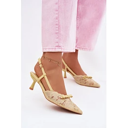 Dámské krajkové sandály na podpatku s mašlí Žluté model 22107289 - Boto