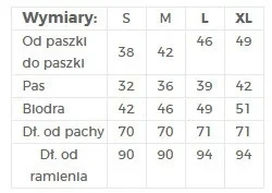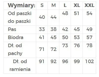 | Od podpaží k podpaží | 38 | 42 | 46 | 49 | 55 |
