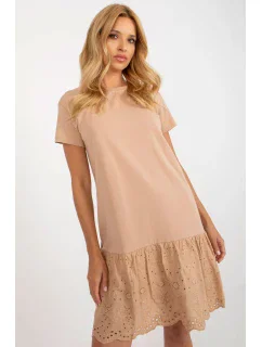 Dámské krajkové šaty v pastelově růžové barvě s dlouhými rukávy a výstřihem model 5917737