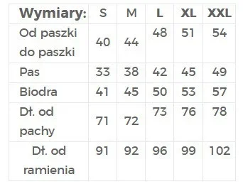 | Délka od podpaží | 70 | 70 | 71 | 71 | 71 |