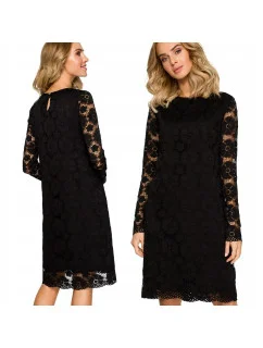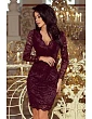 Krajkové šaty s výstřihem a dlouhými rukávy.
