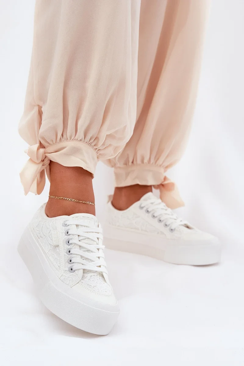 Lehké, vzdušné a romantické – dámské krajkové tenisky Big Star v čistě bílé barvě jsou ideální volbou pro jarní a letní dny. Elegantní krajka dodává botám ženský půvab, zatímco klasický střih a pohodlná podrážka zajišťují komfort po celý den.