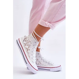 Vysoké dámské tenisky jsou vyrobeny z textilního materiálu. Prolamovaný svršek je ideální pro teplejší dny, protože zajišťuje dostatečné odvětrávání obuvi. Model má klasické šněrování. Tenisky jsou umístěny na platformě s gumovou, protiskluzovou podrážkou. Tento model má navíc nos vyztužený gumou. Při výběru velikosti se řiďte tabulkou velikostí.