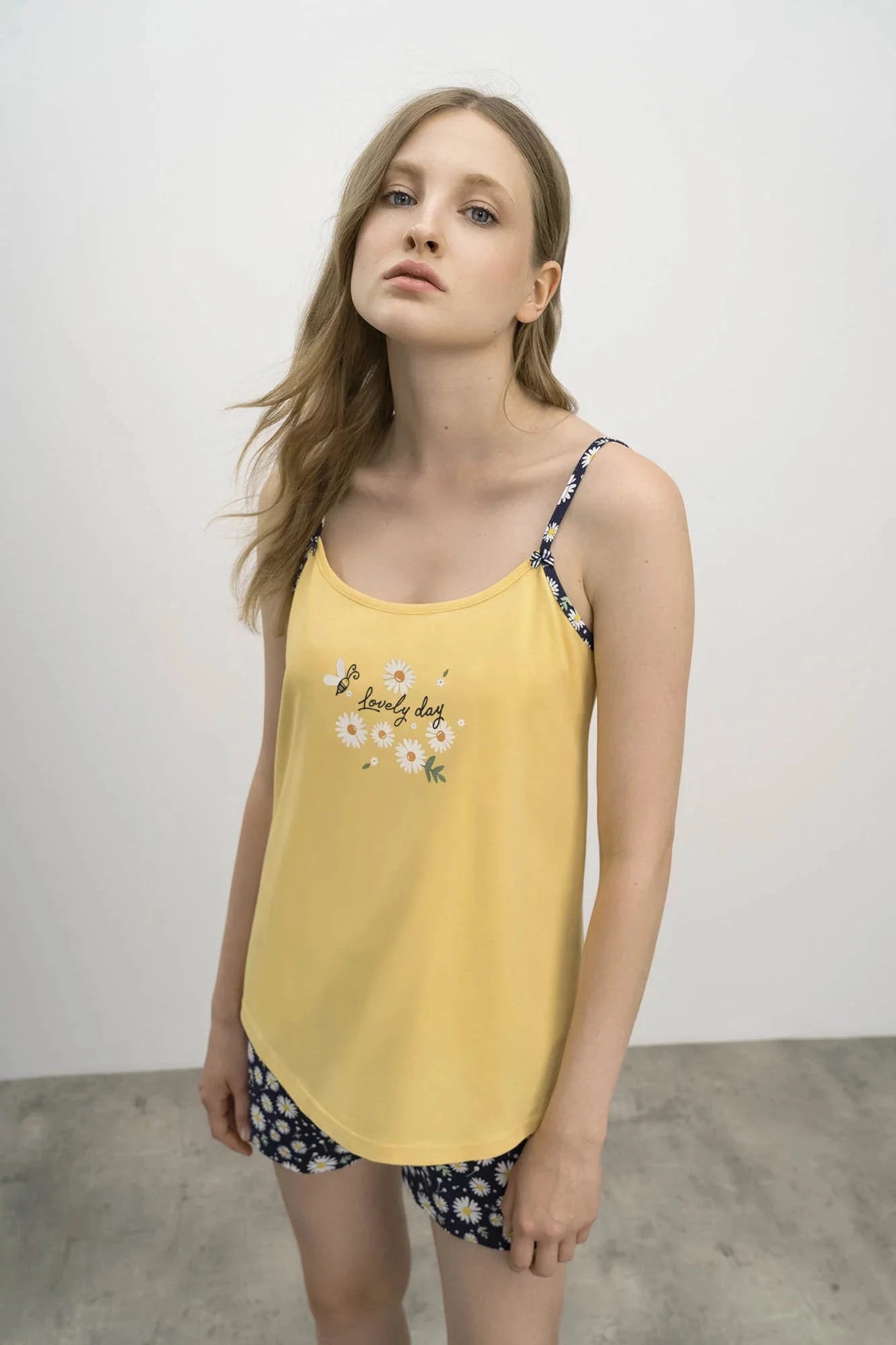 Produkt Dámské krátké pyžamo babydoll 16203 - Vamp prodáváme v těchto velikostech: XS, S, La barvách žluto-modrá5210125156864, 5210125156871, 5210125156895